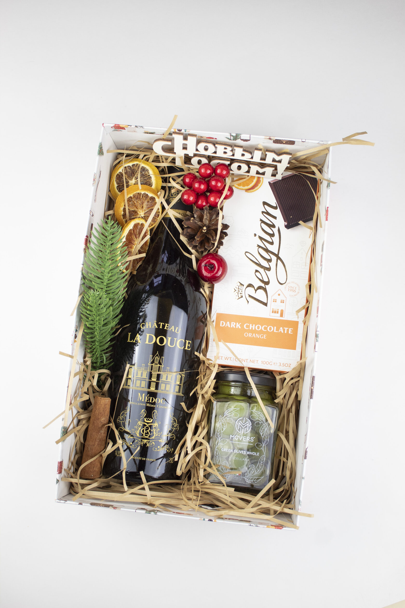 арт. оф078373 "НОВОГОДНИЙ СЮРПРИЗ" "Chateau La Douce" Medoc AOC Шоколад Горький Belgian С Апельсином 100г Оливки Зеленые С Косточкой Nocellara, 260мл. + Скидки и бонусы при выполнении условий Альта Вина